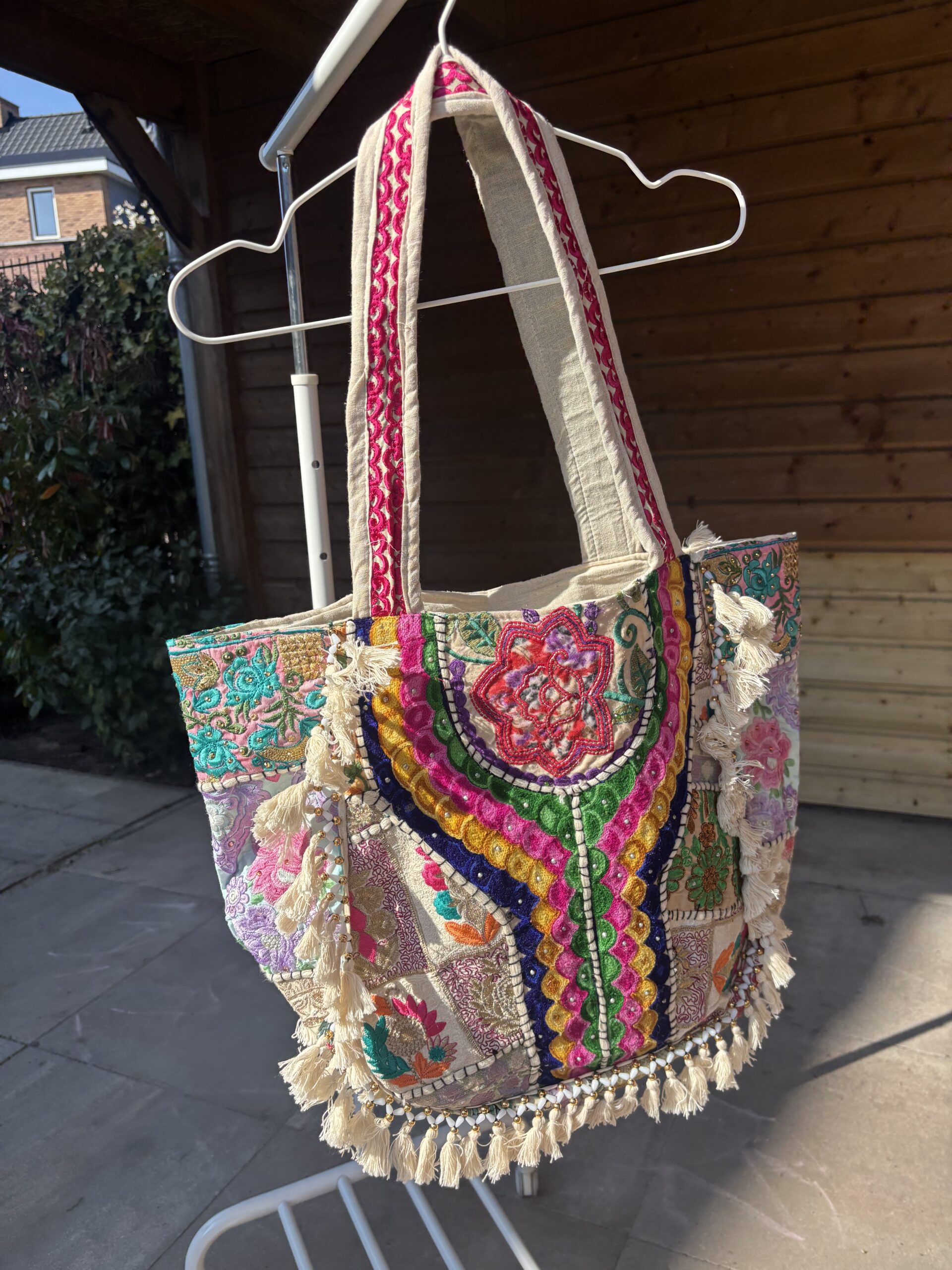 Let op: handgemaakt van vintage stoffen. Het kan dus gebeuren dat er steentjes of draadjes loslaten! Hier zit geen garantie op.